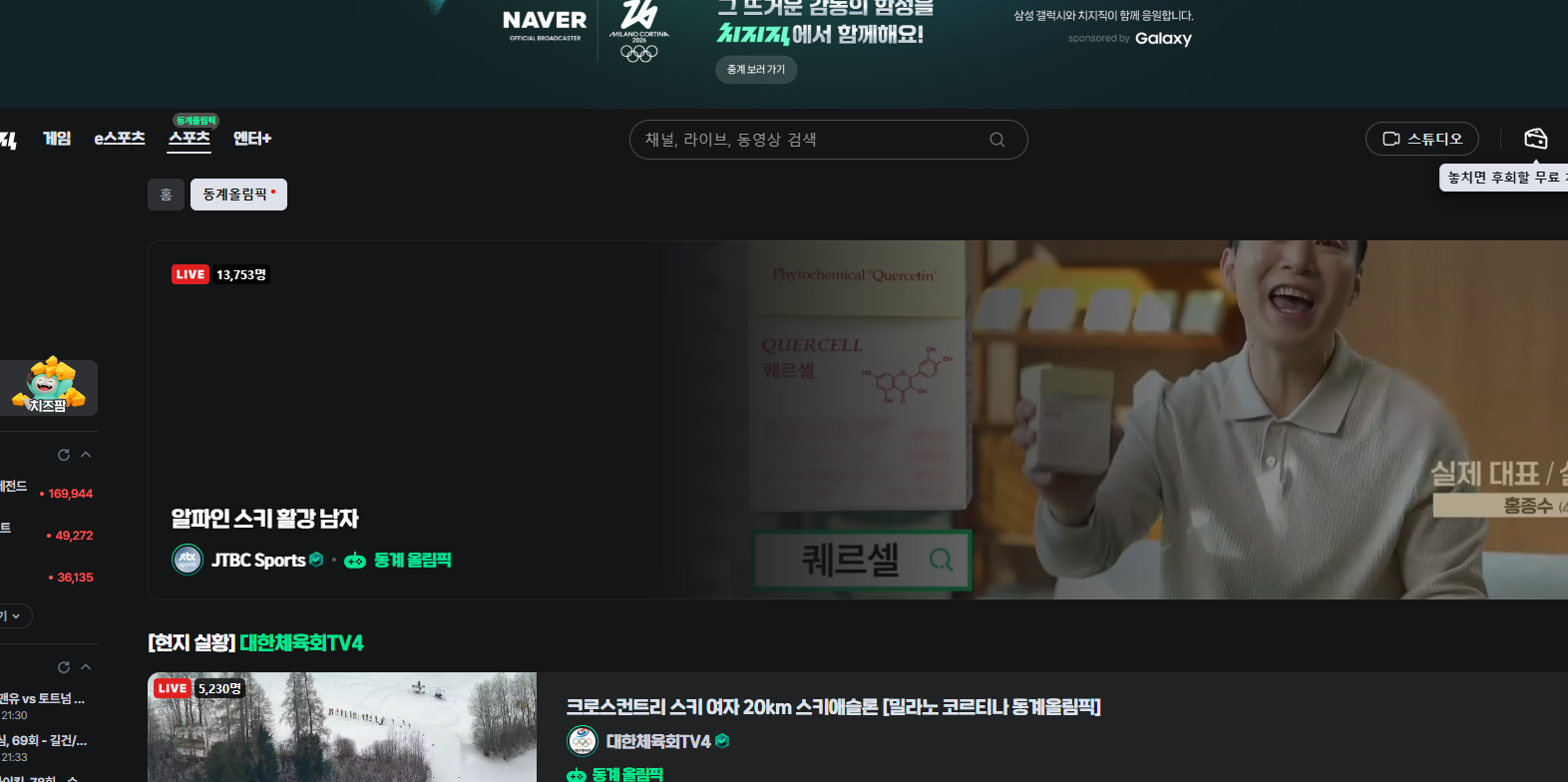 카테고리 없음 제25회 밀라노 코르티나 동계올림픽 중계 대한민국 출전 3시~ by ohmoney 2026. 2. 8. [ 목차 ] 밀라노 동계 올림픽 경기 보기 올림픽 유투브 바로가기 올림픽 유투브 JTBC 올림픽 중계 바로가기 JTBC 홈페이지 치지직 채널 바로가기 치지직 네이버 채널 네이버 스포츠 바로가기 네이버 올림픽 방송 공유하기 게시글 관리 머니원데이