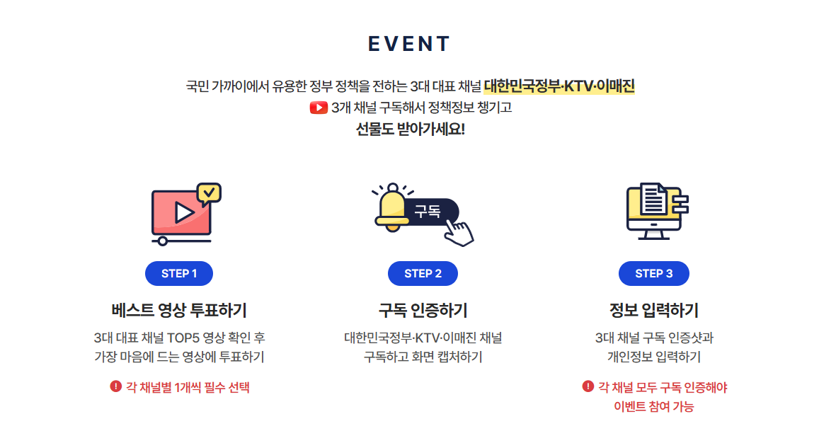 마음에 드는 채널 영상에 투표하고 화면 캡처하고 인증샷과 개인 정보를 입력 하면 됩니다.
