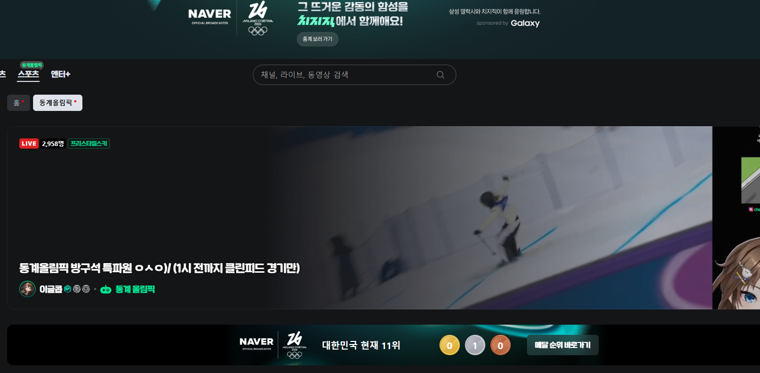 카테고리 없음 2026 밀라노 코르티나 올림픽 중계 네이버, 치지직, JTBC , 유투브 by ohmoney 2026. 2. 9. [ 목차 ] 2026 이탈리아 밀라노 코르티나 올림픽 중계 JTBC 올림픽 중계 바로가기 2026 밀라노 코르티나 동계올림픽 짜릿하게 다채롭게, 올림픽은 JTBC! sports.jtbc.co.kr 유투브 올림픽 바로가기 유투브 올림픽 치지직 올림픽 바로가기 치지직 올림픽 화면 편하신 채널 골라보세요 공유하기 게시글 관리 머니원데이
