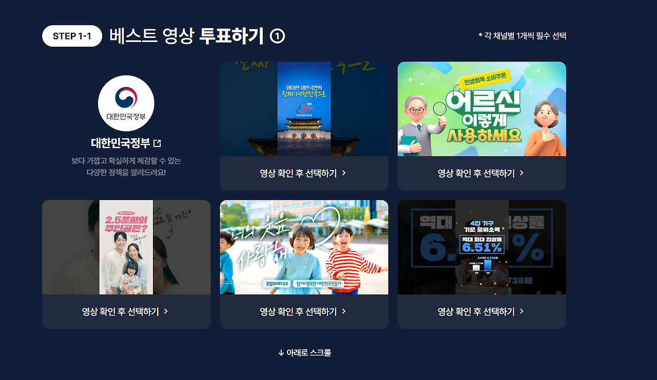 마음에 드는 채널 영상에 투표하고 화면 캡처하고 인증샷과 개인 정보를 입력 하면 됩니다.