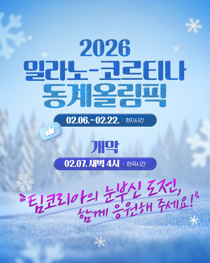 2026년 밀라노 코르티나 동계올림픽에 참가하는 팀 코리아 우리 선수들을 응원 해주세요~