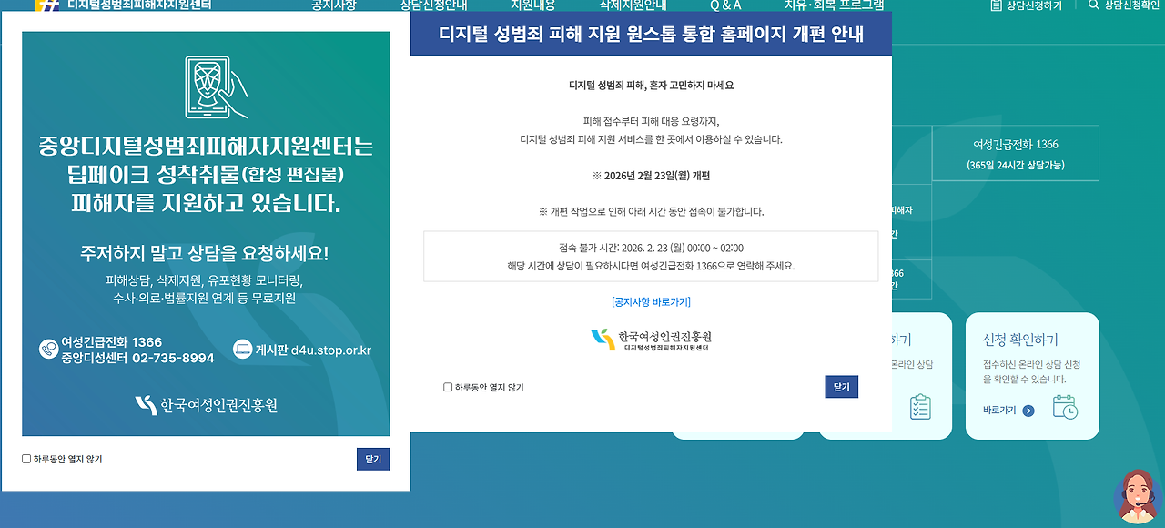 설 연휴에도 국민들을 위한 아이돌봄, 가족상담, 청소년보호, 다문화 가족상담, 디지털성폭력비해등 민생지원 서비스는 정상 운영합니다. 알아보고 위급시 활용하시기 바랍니다.