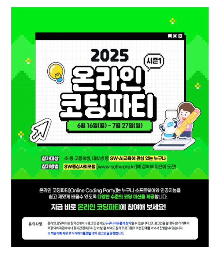 과학기술정보통신부와 교육부가 공동 주최하는 '2025 온라인 코딩파티 시즌1'가 바로 그 주인공!