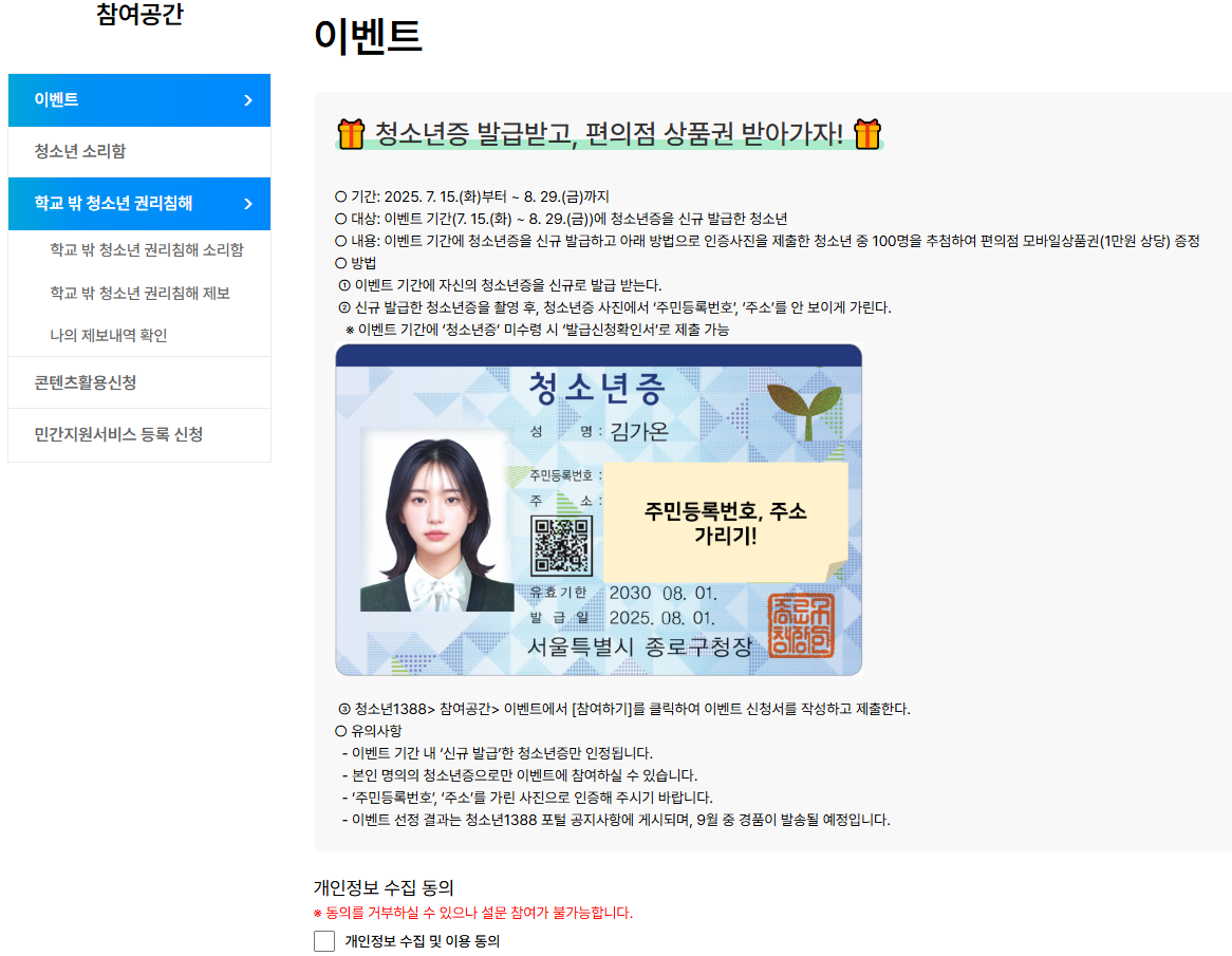 청소년증, 발급하고 이벤트까지!