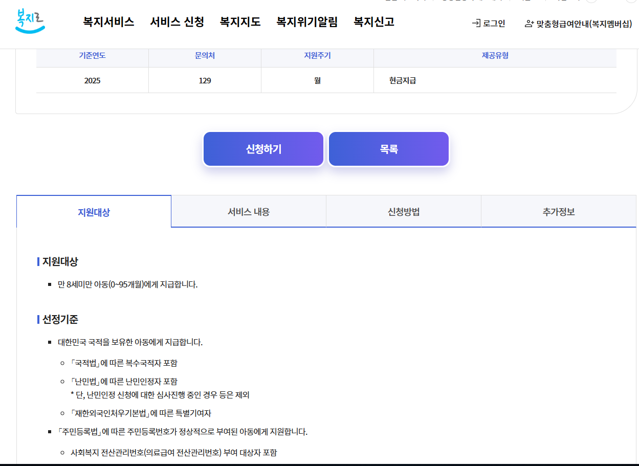 - 대한민국 국적을 가진 만 8세 미만(0~95개월)의 아동