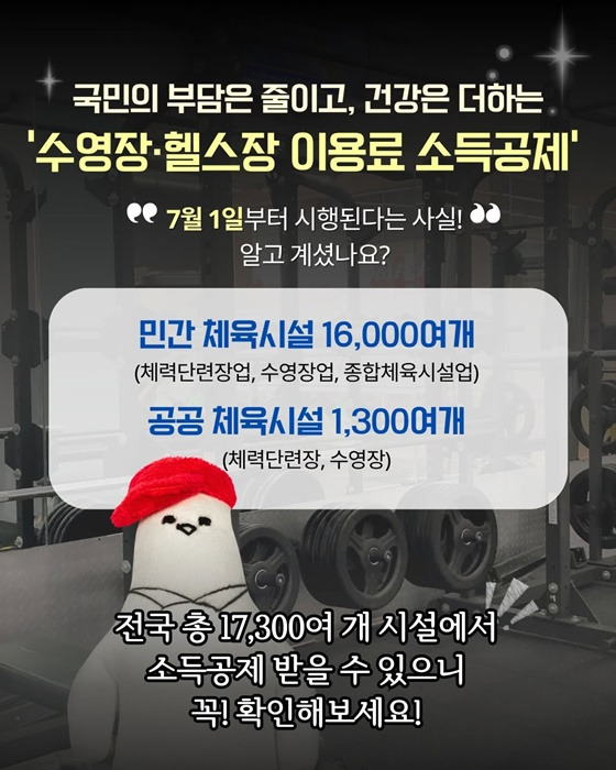 정부가 발표한 ‘체육시설 이용료 소득공제’ 제도는 근로소득자가 헬스장, 수영장 등 등록된 체육시설을 이용할 경우, 그 이용료에 대해 소득공제 혜택을 받을 수 있도록 한 제도입니다. 기존에는 일부 업종(예: 체력단련장업, 수영장업)에만 적용됐지만, 이번 개편으로 공공체육시설과 종합체육시설업까지 확대 적용된 것이 큰 특징입니다.
