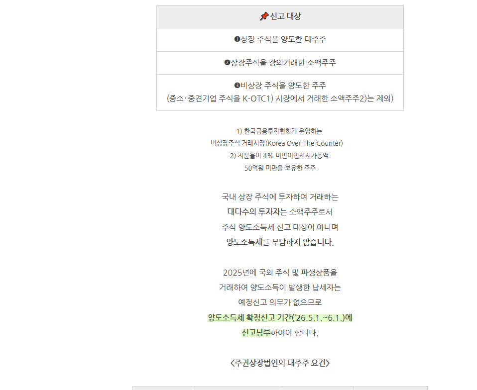 특히 K-OTC 시장이나 계좌 이체를 통해 주식을 양도한 경우 국세청의 사전 안내 대상에 포함될 수 있어 주의가 필요합니다.