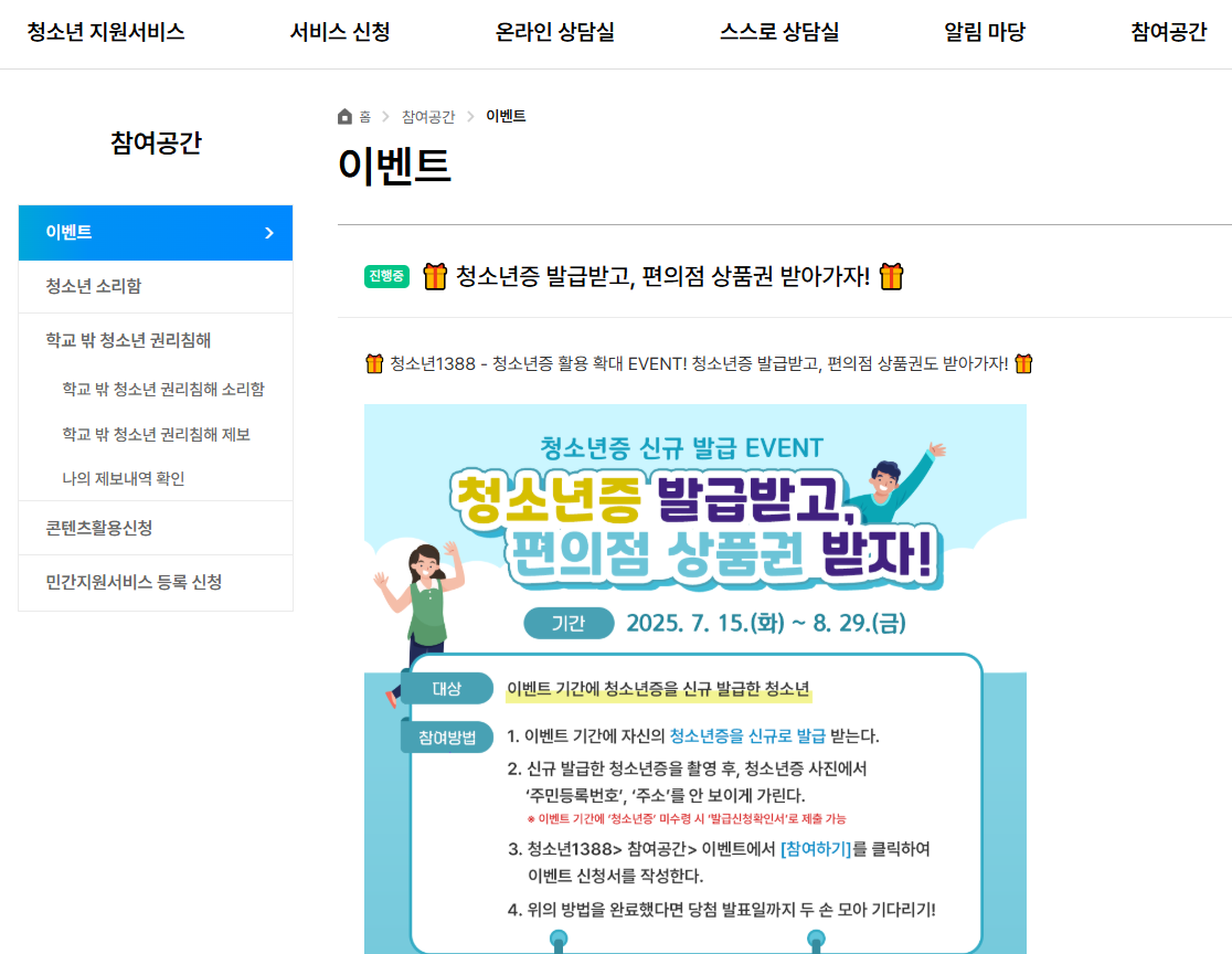 청소년증 발급하면 ‘편의점 상품권’ 증정! 참여 방법은?
