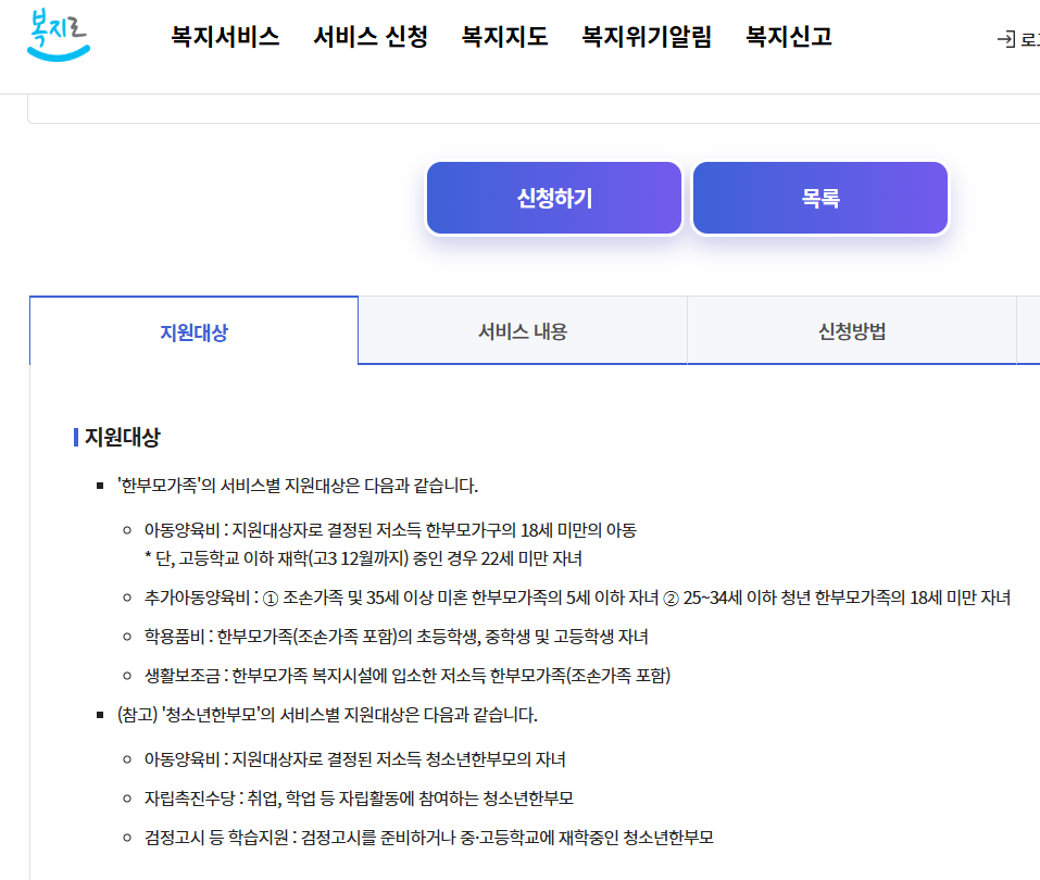 2) 한부모가족 복지급여 지급대상